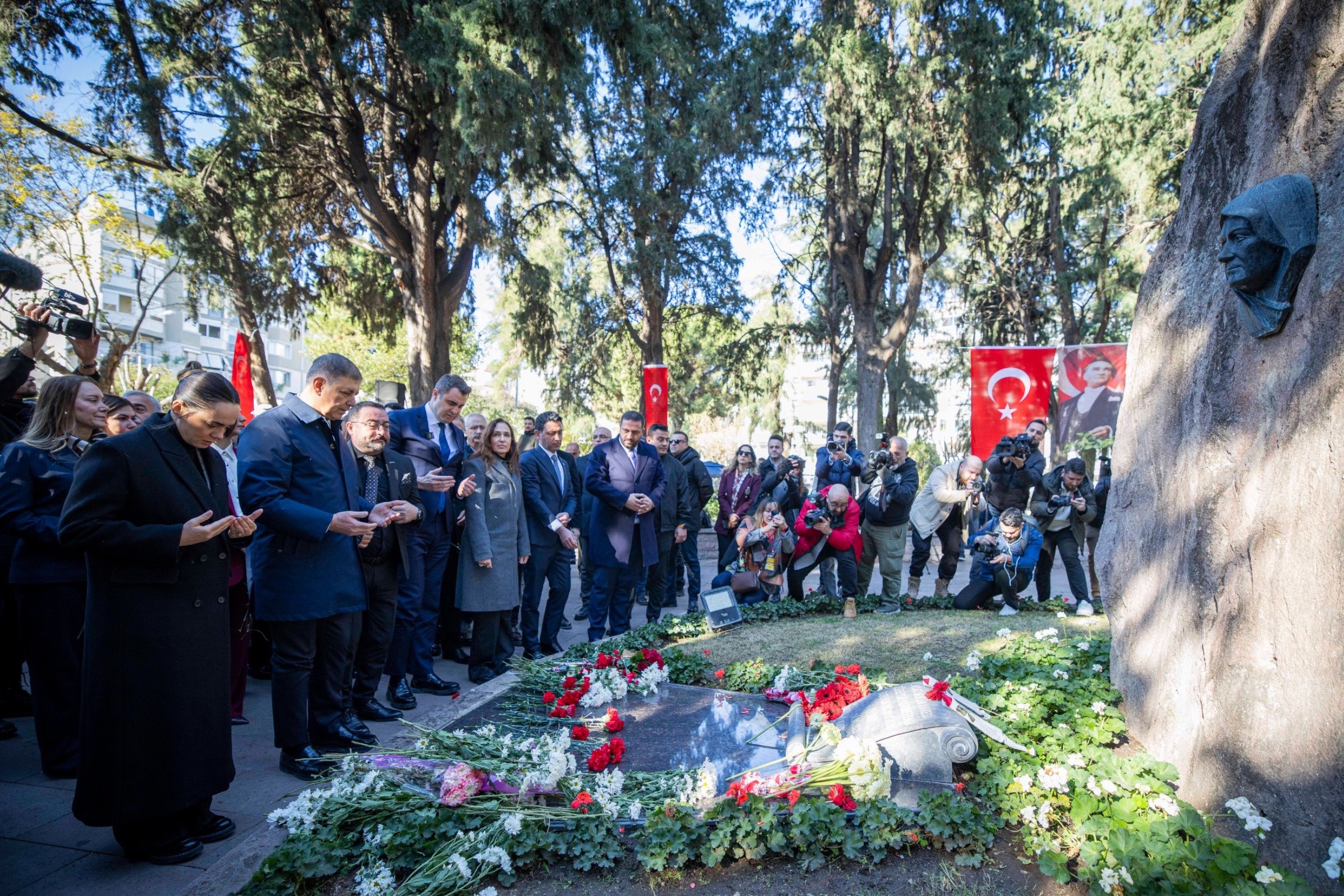 Türkiye Cumhuriyeti’nin kurucusu Ulu Önder Gazi Mustafa Kemal Atatürk’ün annesi Zübeyde Hanım, vefatının 103’üncü yılında Karşıyaka’daki anıt mezarı başında anıldı. İzmir Büyükşehir Belediyesi ev sahipliğinde düzenlenen anma törenine İzmir Büyükşehir Belediye Başkanı Dr. Cemil Tugay ve eşi Öznur Tugay’ın yanı sıra CHP İzmir İl Başkanı Çağatay Güç, Karşıyaka Belediye Başkanı Yıldız Ünsal, Konak Belediye Başkanı Nilüfer Çınarlı Mutlu, Narlıdere Belediye Başkanı Erman Uzun, Ödemiş Belediye Başkanı Mustafa Turan, Bayraklı Belediye Başkanı İrfan Önal, siyasi partilerin ve sivil toplum kuruluşlarının temsilcileri, meclis üyeleri ve muhtarlar katıldı.