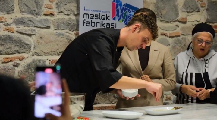 İzmir Büyükşehir Belediyesi’nin Meslek Fabrikası’nda düzenlediği sağır ve işitme engelli kursiyerlere yönelik pastacı çıraklığı kursundan mezun olan kursiyerler, İzmir Çeşme’de restoranı bulunan ve sosyal medya platformlarında birbirinden özel tariflerini paylaşan şef Rıfat Yurttaş ile buluştu. Engelli Çalışmaları Şube Müdürlüğü’nde görevli işaret dili çevirmenleri Özlem Özer ve Melek Uslular’ın çevirmenliğiyle katılımcılarla iletişim kuran Yurttaş, onlarla birlikte Ege mutfağına ait meze ve zeytinyağlı yemekler yaptı.
