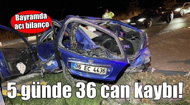 Bakan Yerlikaya, "Bayram tatilinin ilk 5 gününde (cumartesi, pazar, pazartesi, salı ve çarşamba) maalesef 36 kişi hayatını kaybetti. 6 bin 550 kişi ise yaralandı. Hayatını kaybeden vatandaşlarımıza Allah’tan rahmet, yaralılarımıza acil şifalar diliyorum. Lütfen aşırı hız yapmayalım. Araçlarımızda da otobüslerde de emniyet kemeri takmayı ihmal etmeyelim" ifadelerini kullandı.