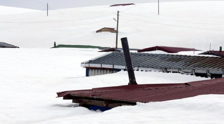 Kar yağışı nedeniyle vatandaşların yazın kullandığı yaylalar, beyaza büründü. Kar, yayla evlerinin çatısına kadar yükseldi.