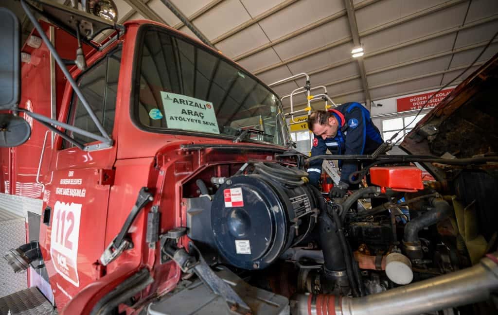 Atölye Formeni Mustafa Okkan, İzmir Büyükşehir Belediyesi İtfaiye Dairesi Başkanlığı envanterindeki tüm araç, gerecin bakım ve onarımını yaptıklarını söylüyor. İtfaiye araçlarının periyodik bakımlarını düzenli olarak gerçekleştirdiklerini anlatan Okkan, “Afetlerde sahaya gidip teknik destek veriyoruz. Biz de olağanüstü durumlarda itfaiyecilerle birlikte hareket ediyoruz” dedi. Bu atölyede yapılan her işlem, aslında bir hayatın daha güvence altına alınmasını sağlıyor. Okkan, “Araçların yazlık, kışlık tüm bakımlarını yapıyoruz. Arızaları gideriyoruz. İtfaiye araçlarının yüzde 91’inin bakımını kendi atölyemizde yapıyoruz. Dışarıya yaptırmak çok maliyetli olurdu. Biz belediyemizin öz kaynaklarıyla bu işi yapıyoruz” diyor.