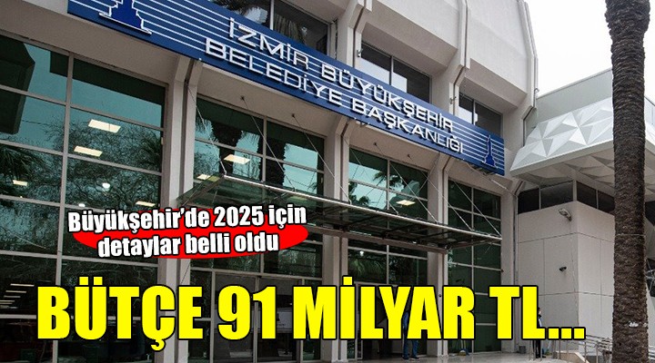 SONKALEİZMİR-İzmir Büyükşehir Belediyesi'nin 2025 yılı taslak bütçesi 91 milyar 300 bin TL olarak belirlendi. Büyükşehir Belediyesi'nin bugün yapılacak Kasım Ayı meclis toplantısının ikinci birleşiminde bütçe ile ilgili detaylar görüşülecek.