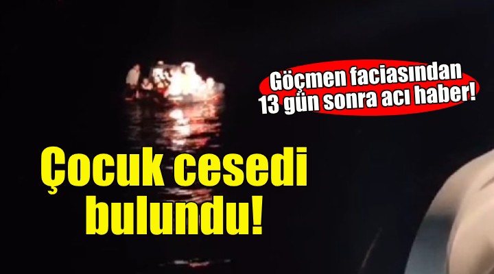 Bölgede yapılan arama kurtarma çalışmalarından sonuç alınamazken, talihsiz çocuğun 13 gün sonra cansız bedeni bulundu. Lastik bottan düşmesi sonucu boğularak yaşamını yitiren çocuğun cenazesi, İzmir Adli Tıp Kurumu morguna kaldırıldı.
