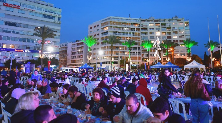 Giderek ağırlaşan yaşam koşullarına karşı İzmir Büyükşehir Belediye Başkanı Tunç Soyer’in öncülüğünde yürütülen “sosyal belediyecilik” anlayışı doğrultusunda her sene olduğu gibi yine Ramazan ayında iftar bereketi büyütülüyor. “Bir Şehir Tek Sofra” sloganıyla kentin dört bir yanından katılan vatandaşlarla Cumhuriyet Meydanı’nda iftar programı düzenlendi. Buluşmada İzmir Büyükşehir Belediye Başkanı Tunç Soyer ve eşi Neptün Soyer ile kızları Defne Soyer yer alırken İzmirliler aileyle bol bol hatıra fotoğrafı çektirdi.