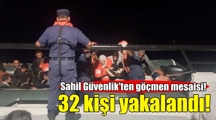 Ekiplerce durdurulan lastik bottaki 8'i çocuk 32 kaçak göçmen yakalandı.