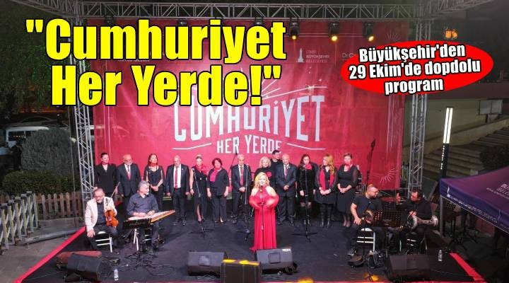 “Cumhuriyet Her Yerde” programı kapsamında 23 Ekim’de kutlamaların adresi Kiraz Yeni Mahalle olacak. 24 Ekim’de Menemen Gazi Mustafa Kemal Mahallesi, 25 Ekim’de Menderes Şehit Astsubay Ömer Halis Demir Parkı, 26 Ekim’de Bergama Ayaskent Mahallesi’nde, 27 Ekim’de Tire Merkez Gölet’te, 28 Ekim’de Selçuk Belevi Mahallesi’nde birbirinden farklı etkinlikler gerçekleştirilecek. 29 Ekim Cumhuriyet Bayramı’nda saat 10.00’da Selçuk Zeytinköy Mahallesi’nde bando gösterisi yapılacak. Saatler 18.00’i gösterdiğinde ise Selçuk Merkez İstasyon Meydanı’nda kortej yürüyüşü, Selçuk Belediyesi Orkestrası Konseri ve çocuklar için eğlenceli etkinlikler olacak. 29 Ekim Cumhuriyet Bayramı’nda ayrıca Dikili merkezde saat 20.00’de düzenlenecek konserler coşkuyu doruğa çıkaracak.