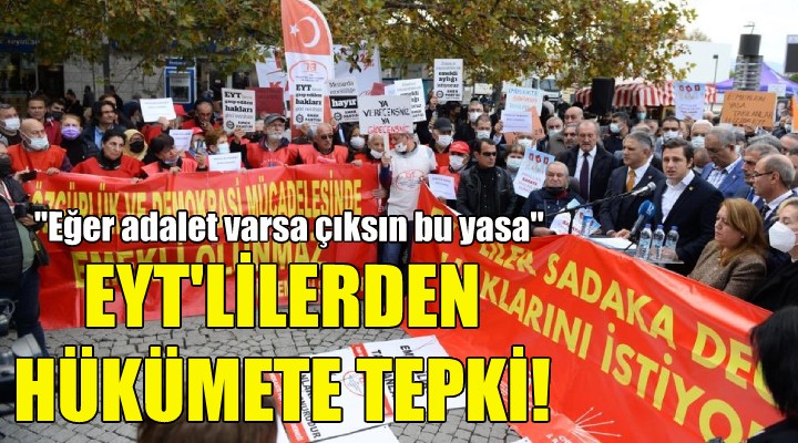 Konak Meydanı'ndaki açıklamaya CHP İzmir İl Başkanı Deniz Yücel, İYİ Parti İzmir İl Başkanı Hüsmen Kırkpınar, Saadet Partisi İzmir İl Başkanı Mustafa Erduran, CHP İzmir Milletvekilleri Atila Sertel ile Tacettin Bayır, İzmir EYT Sosyal Yardımlaşma Derneği Başkanı Doğan Türker ve EYT mağduru yurttaşlar katıldı. Ellerinde "EYT insan hakları ihlalidir", "EYT kader değildir" "Ölüm var, kul hakkı var" yazılı dövizler taşıyan yurttaşlar, "Eğer Adalet varsa çıksın artık bu yasa" sloganıyla hükümete çağrı yaptı.