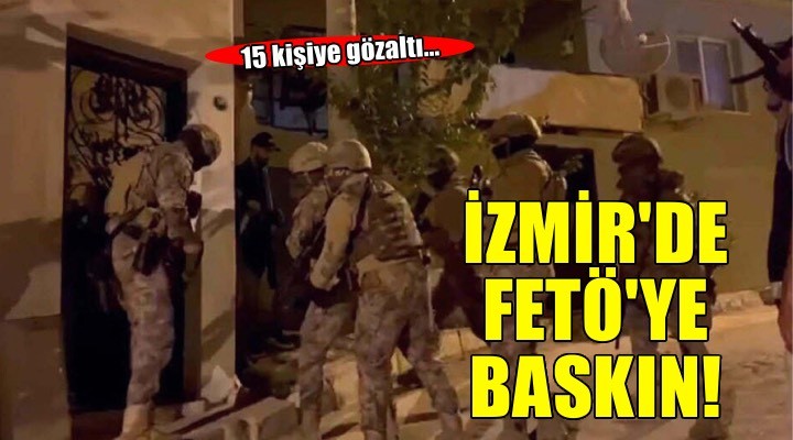 İzmir Cumhuriyet Başsavcılığı koordinesinde, FETÖ/PDY'nin mahrem yapılanması içerisinde bulundukları belirlenen 17 şüpheli hakkında gözaltı kararı verildi. İzmir İl Jandarma Komutanlığı TEM Şube Müdürlüğü ekiplerince düzenlenen operasyonda 15 şüpheli, gözaltına alındı. Firari 2 şüphelinin yakalanması için de çalışmaların sürdüğü bildirildi.