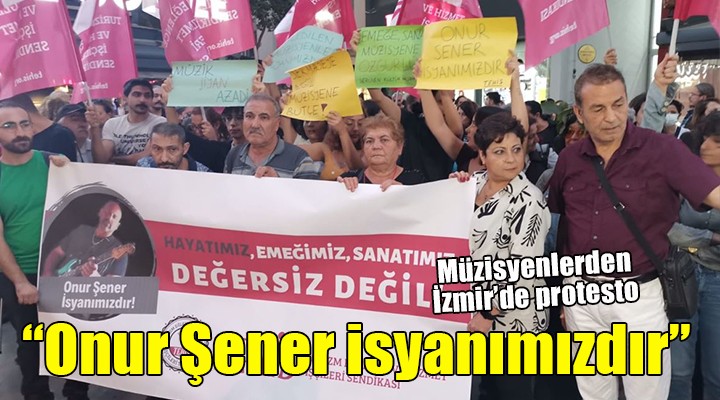 SONKALEİZMİR- Alsancak Türkan Saylan Kültür Merkezi önünde toplanan Turizm Eğlence ve Hizmet İşçileri Sendikası (TEHİS) İzmir Şubesi üyeleri ve yurttaşlar, "Hayatımız, emeğimiz, sanatçımız değersiz değil" yazılı pankart açtı. "Sermayeye değil, müzisyene bütçe", "Onur Şener isyanımızdır", "Emeğe, sanata, müzisyene özgürlük" sloganları atan grup basın açıklaması yaparak Onur Şener'in öldürülmesini protesto etti.