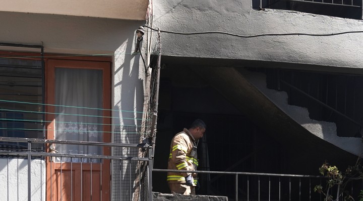 Yangın nedeniyle ikinci kattaki evinde mahsur kalan Defne Başbay (15), komşularının yardımıyla daireden çıkarıldı.