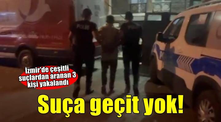 Motosikletli Polis Timler Amirliği'ne bağlı ekipler ise Konak ilçesinde şüphe üzerine durdurulup, kontrol edilen şüpheli N.Y.'nin 'birden fazla kişi ile tehdit' suçundan hakkında 15 yıl 9 ay kesinleşmiş hapis cezasıyla arandığı tespit edildi. Gözaltına alınan N.Y., Basmane Polis Merkezi Amirliği'ne teslim edildi.