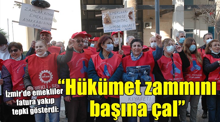 SONKALEİZMİR-Konak'ta bir araya gelen emekliler, "Emekliler ekmeğe muhtaç, simide hasret", "Çocuğuma kıyafeti çok görme" "Emekli maaşı asgari ücret kadar olsun" yazılı dövizler taşıdı. "Hükümet zammını al başına çal", "Sadaka değil toplu sözleşme", "Hükümet istifa" sloganları atan emekliler, taşıdıkları dövizlere ise ekmek ve simit parçaları astı. Elektrik ve doğalgaz faturası yakıp son gelen zamları da protesto eden emekliler, hükümete sert ifadelerle yüklendi.