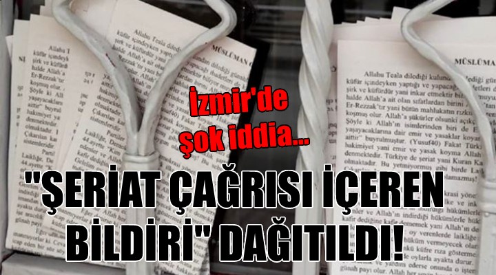 SONKALEİZMİR-Halkın Kurtuluş Partisi (HKP) Genel Sekreter Yardımcısı ve İzmir İl Başkanı Av. Tacettin Çolak, İzmir’in Bergama ilçesinin en işlek caddelerinden Atatürk Bulvarı üzerindeki apartmanların kapılarına Kurban Bayramı'nın birinci gününde şeriat çağrısı içeren bildiriler bırakıldığını iddia etti.