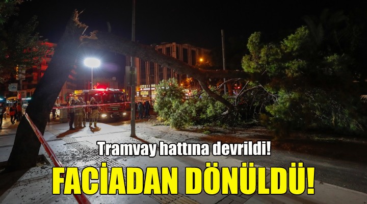 Şair Eşref Bulvarı Montrö Meydanı'nda kaldırımda bulunan bir ağaç henüz belirlenemeyen nedenle kökünden sökülerek tramvay hattı ve yola devrildi.