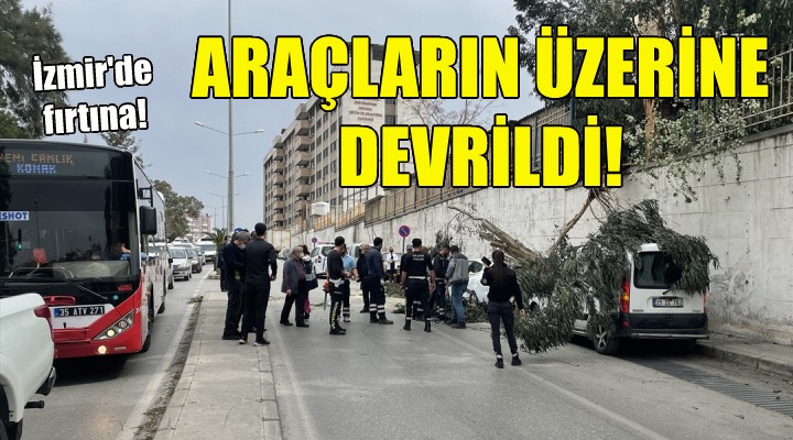 Kentte öğleden sonra etkili olan rüzgar nedeniyle merkez Karabağlar ilçesi Ali Rıza Avni Bulvarı'nda bulunan 2 ağaç devrildi. Ağaçlardan biri park halindeki iki otomobilin üzerine düştü. Araçlarda hasar oluştu.