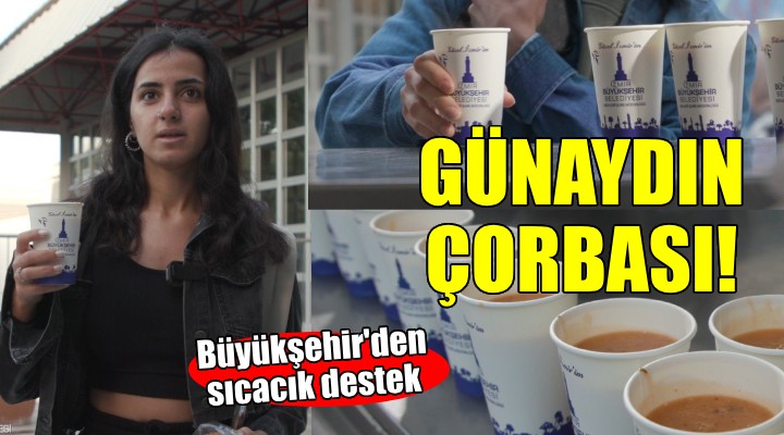 İzmir Büyükşehir Belediyesi derinleşen ekonomik krizden etkilenen gençlerin yanında olmaya devam ediyor. 6 noktada üniversite öğrencileri için her gün sıcak yemek dağıtımı sürerken İzmir Büyükşehir Belediye Başkanı Tunç Soyer’in “Öğrenci arkadaşlarımın sabah kahvaltılarını etmeden derse girmelerine gönlüm razı değil” diyerek başlattığı “Günaydın Çorbası” geleneği de devam ediyor. Bu sene ilk etapta Fahrettin Altay Aktarma Merkezi ve Ege Üniversitesi Metro İstasyonu’nda hizmete alınan Çorba Durakları’nda öğrenciler güne sıcak çorbayla başlıyor.