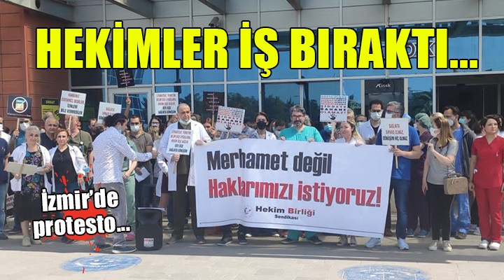 SONKALEİZMİR-Hekim Birliği Sendikası üyeleri bugün İzmir Çiğli Eğitim ve Araştırma Hastanesi önünde toplanıp basın açıklaması yaptı. 17-18 ve 25-26 Mayıs tarihlerinde 4 gün iş bırakacaklarını duyuran hekimler, hükümete ve Sağlık Bakanlığı'na tepki gösterdi.