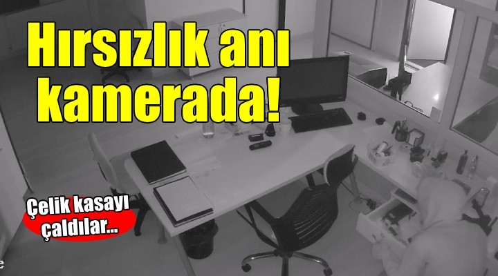 Hırsızlık anı güvenlik kamerasınca kaydedildi. Görüntülerde, iş yerine giren şüphelinin bir odadan aldığı çelik kasayı ve alet çantasını diğer odaya taşıması yer alıyor.