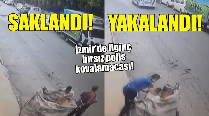 Şüpheli, yolda ilerlemeye çalışan bir kağıt toplayıcısına ait çek çek denilen aracın içerisine atlayarak polisten saklanmaya çalıştı.