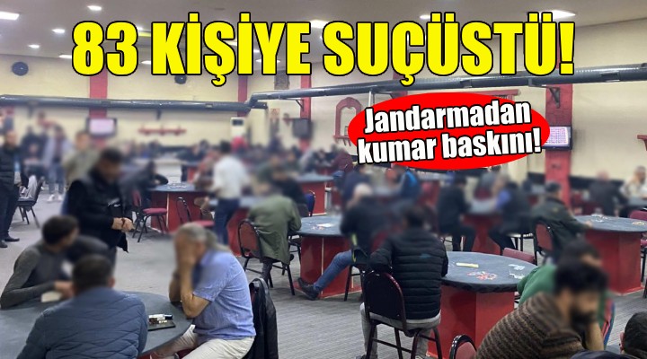 Jandarma ekipleri, Bornova Gökdere Mahallesi'ndeki bir işletmede kumar oynandığı bilgisi üzerine operasyon düzenledi. Yapılan baskında 83 kişi kumar oynarken suçüstü yakalandı. Şahıslara toplam 553 bin 275 TL idari para cezası uygulandı.