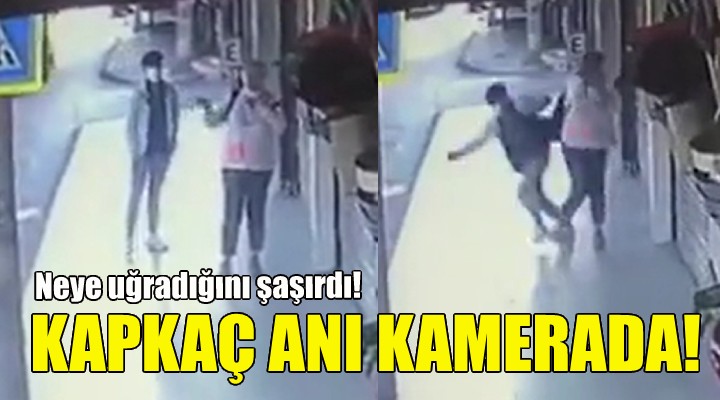 Kapkaç anı bölgedeki bir iş yerinin güvenlik kameraları tarafından saniye, saniye görüntülendi. Polis görüntülerdeki kapkaççıyı yakalamak için çalışma başlattı.