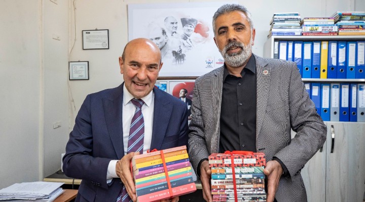 Başkan Tunç Soyer’i Çiğli ziyareti sırasında muhtarlık binasına davet eden Muhtar Erkan Yılmaz, Türk ve dünya klasiklerinin yer aldığı iki set kitabı Başkan Soyer’e hediye etti.