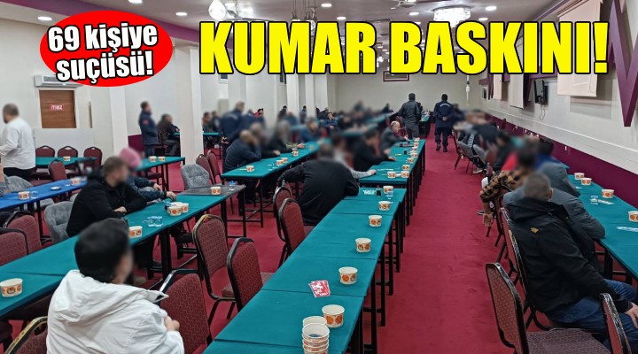 Operasyonda 69 kişi kumar oynarken suçüstü yakalandı, işletme mühürlenerek kumar oynamak için kullanılan materyallere el konuldu.