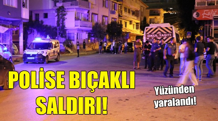 Bunun üzerine, Bayraklı İlçe Emniyet Müdürlüğü ekipleri olay yerine sevk edildi. Polis ekipleri, elinde bıçak olan E.K.'ye, bıçağı bırakması yönünde uyarıda bulundu. Polisin uyarısını dikkate almayan E.K.'ye, ekipler biber gazı ile müdahale etti. Müdahale sırasında elindeki bıçağı rastgele savuran E.K., polis memuru F.K.'yi yüzünden yaraladı.