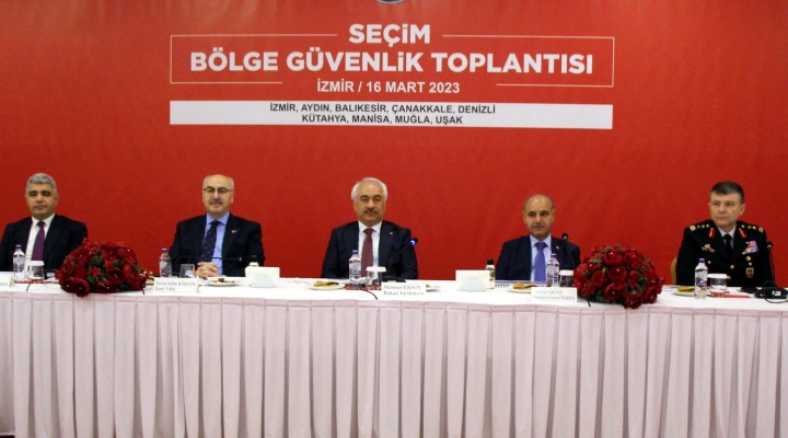 İçişleri Bakan Yardımcısı Mehmet Ersoy'un başkanlığında, 14 Mayıs Cumhurbaşkanlığı ve Milletvekilleri Genel Seçimleri için İzmir'de seçim bölge güvenliği toplantısı yapıldı. Seçim öncesi, günü ve sonrası alınacak tedbirlerin konuşulduğu toplantıya; Emniyet Genel Müdürü Mehmet Aktaş, İller İdaresi Genel Müdürü Selçuk Aslan, Jandarma Genel Komutanlığı Asayiş Başkanı Tümgeneral Ferdi Korkmaz, İzmir, Aydın, Balıkesir, Çanakkale, Denizli, Kütahya, Manisa, Muğla ve Uşak valileri ile 9 ilin kolluk kuvvet amirleri katıldı.