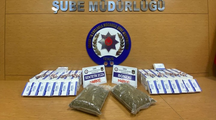 Araçta, dedektör köpek yardımıyla yapılan aramada, 1 kilo 935 gram sentetik uyuşturucu ile 5 bin 600 sentetik ecza hap ele geçirildi.
