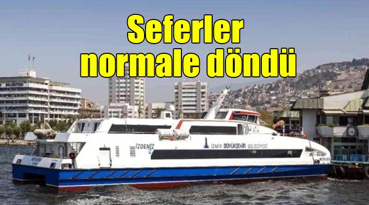 İZDENİZ Genel Müdürlüğünden yapılan açıklamada, hava koşulları nedeniyle saat 12.30 itibarıyla iptal edilen seferlerin yeniden başladığı belirtildi.