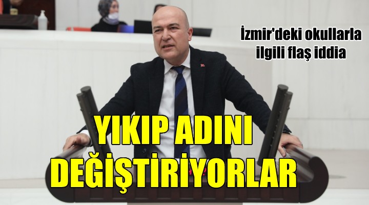 CHP İzmir Milletvekili Milletvekili Murat Bakan, açıklamasında şu ifadelere yer verdi: “Yıkılıp yeniden yapılan okulların bazılarının isimleri değiştiriliyor. Örneğin; Karşıyaka Vali Erol Çakır Anadolu Lisesi yıkıldı, yeni bina yapıldı, asılan tabeladan okulun adının Adnan Menderes Anadolu Lisesi olarak değiştirildiğini gördük. Ya da bir ilkokulun binası yıkılıyor yenisi yapılıyor burası ortaokul oluyor. İzmir’de kaç okulda isim ve kademe değişikliğine gidildi, bunun gerekçesi nedir? Bilmek istiyoruz.”
