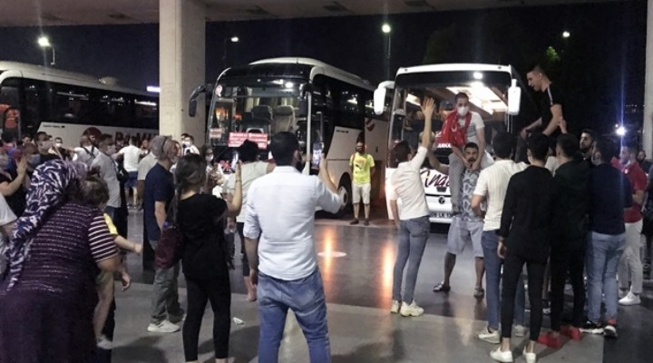 Vatani görevleri için yola çıkacak gençler, "Mustafa Kemal'in askerleriyiz" ve "En büyük asker bizim asker" sloganları eşliğinde otobüslere bindirildi.