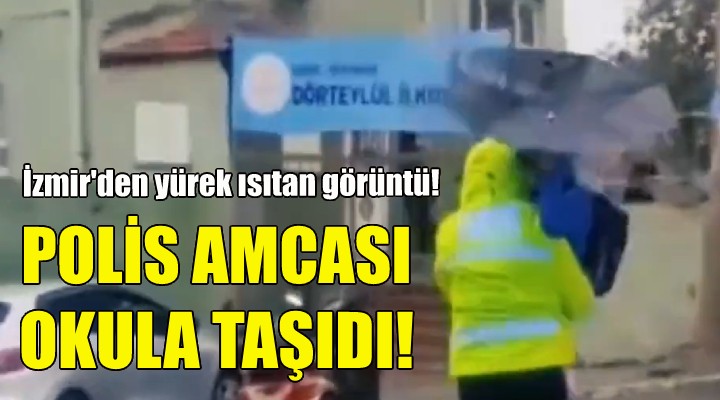 O anlara dair görüntü İzmir Emniyet Müdürlüğü'nün sosyal medya hesabından ''Minik kalpler ıslanmasın'' notuyla paylaşıldı.