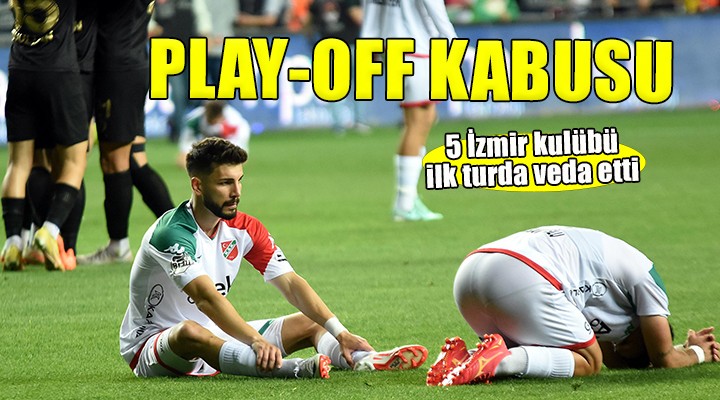 Play-off'a rekor sayıda takımla katılan kent büyük hayal kırıklığı yaşadı. İzmir'in TFF 2'nci Lig ve 3'üncü Lig'de play-off'a adını yazdıran 5 takımından 4'ü henüz ilk turda elendi. Geriye yalnız 3'üncü Lig 1'inci Grup'ta normal sezonu namağlup ikinci tamamlayıp play-off'ta direkt grup finaline çıkan Aliağa Futbol kaldı. TFF 3'üncü Lig 2'nci Grup'ta şampiyonluğu kaçırmasına rağmen sezonu üçüncü bitirip play-off'ta saha avantajını eline geçiren Karşıyaka henüz ilk maçtan havlu attı. Amatörden gelerek profesyonel kategorideki ilk sezonunu geçiren Anadolu Üniversitesi'ne ilk turda evinde 1-0 yenilen Kaf-Kaf üst üste 7'nci yıl 3'üncü Lig'de yer almaktan kurtulamadı.