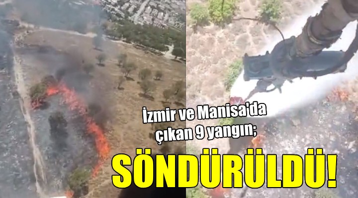 İzmir Orman Bölge Müdürlüğü ekipleri, saat 10.40'ta Kemalpaşa ilçesi Çambel mevkisinde çıkan orman yangına, saat 10.52'de ilk müdahaleyi gerçekleştirdi. Ekipler yangına, 2 uçak, 5 helikopter, 6 dozer, 26 arazöz ve 8 su ikmal aracı ile müdahale etti. Yangın saat 12.44'te kontrol söndürüldü. Yine Dikili ilçesi Çandarlı bölgesinde saat 11.55'te çıkan orman yangınına 1 helikopter, 10 arazöz ve 1 su tankeri ile müdahale edilirken, yangın, saat 12.56'da söndürüldü. Çeşme ilçesi Alaçatı mevkisinde saat 14.10'da ormanda alanda çıkan yangına 2 helikopter, 8 arazöz, 1 su ikmal aracı, 1 dozer ve 1 yer ekibi ile müdahale edilirken, alevler saat 15.41'de kontrol altına alındı. Gaziemir Görece bölgesindeki saat 16.43'te çıkan orman yangına, 4 uçak, 6 helikopter, 20 arazöz, 5 su ikmal aracı, 4 dozer, 6 yer ekibi ile müdahale edilirken, alevler saat 17.06'da söndürüldü. Manisa’nın Saruhanlı ilçesinde saat 11.25'te çıkan orman yangını, 1 helikopter, 4 arazöz, 1 su ikmal aracı ve 1 dozerle yapılan müdahalelerle saat 11.50 itibariyle söndürüldü.