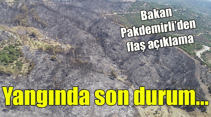 İzmir'in Karabağlar ilçesinde pazar günü çıkan ve şiddetli rüzgarın etkisiyle hızla büyüyüp, Seferihisar ile Menderes ilçelerine kadar uzanan orman yangını kontrol altına alındı. Tarım ve Orman Bakanı Bekir Pakdemirli, bundan sonra söndürme çalışmalarının yavaş yavaş sonlanacağını ve soğutma yapılacağını belirtti. Tarım ve Orman Bakanı Bekir Pakdemirli; "İzmir' deki orman yangını 2 gün 5 saatlik çalışmayla kontrol altına alındı" dedi