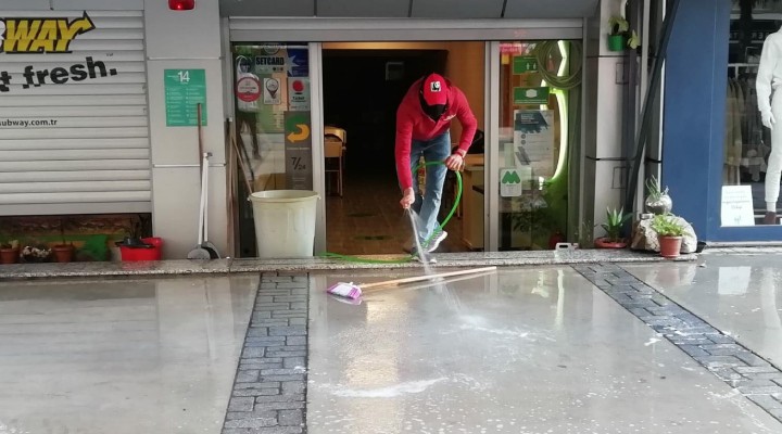 Türkiye genelinde dün saat 21.00'den itibaren başlayan sokağa çıkma kısıtlamasında üretim, imalat ve tedarik zincirlerinin muaf tutulacağının açıklanması sonrası, İzmir'de de gel-al ve paket servis hizmeti veren esnaf, iş yerlerini açtı. Kıbrıs Şehitleri Caddesi esnafı açılış saati 10.00'dan önce temizliklerini yaparak, müşterilerini beklemeye başladı. Restoran işletmecisi Ahmet Zeytinli, erken saatlerde gelip, temizliğe başladıklarını ifade ederek, "Sabah 08.30 gibi dükkanımıza geldik. Dükkanımızın ve çevremizin temizliğimizi yaptık. İçeride bulunan dezenfektanlarımızın kontrollerini yaptık. Biz, her zaman temizliğimize önem veriyoruz. Bu günlerde daha da çok dikkat ediyoruz" dedi.
